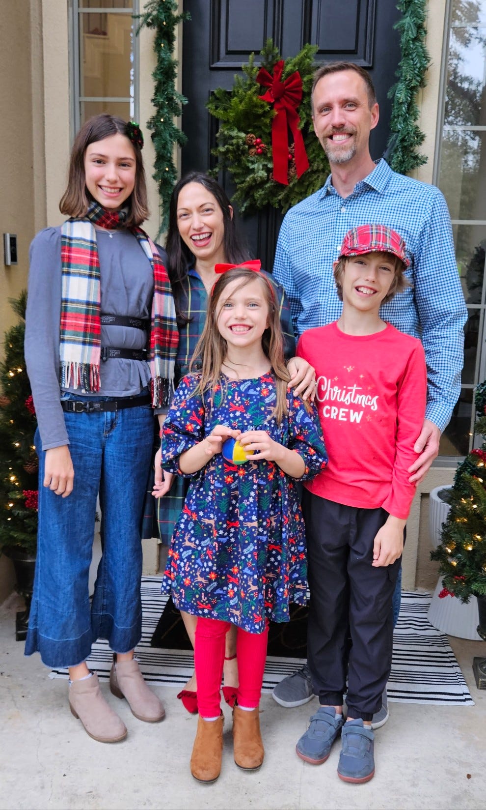 The holidays were filled with family, fun, and relaxation which was just what we needed. I laughed looking at this picture because I used to try to hide in any photo and it was impossible, my weight was always front and center. But now, my kids are so big, and I’m short so they hide me anyway!