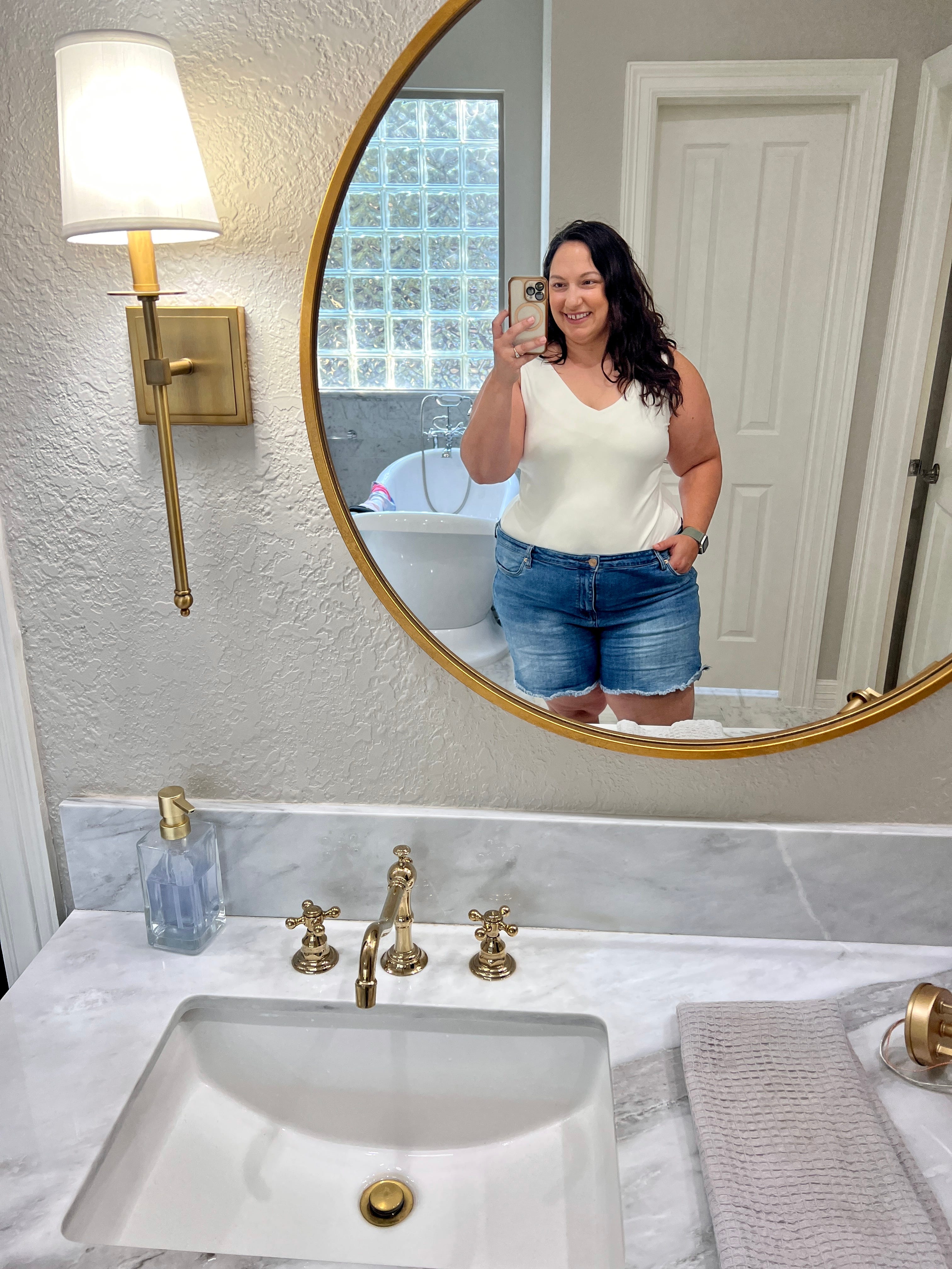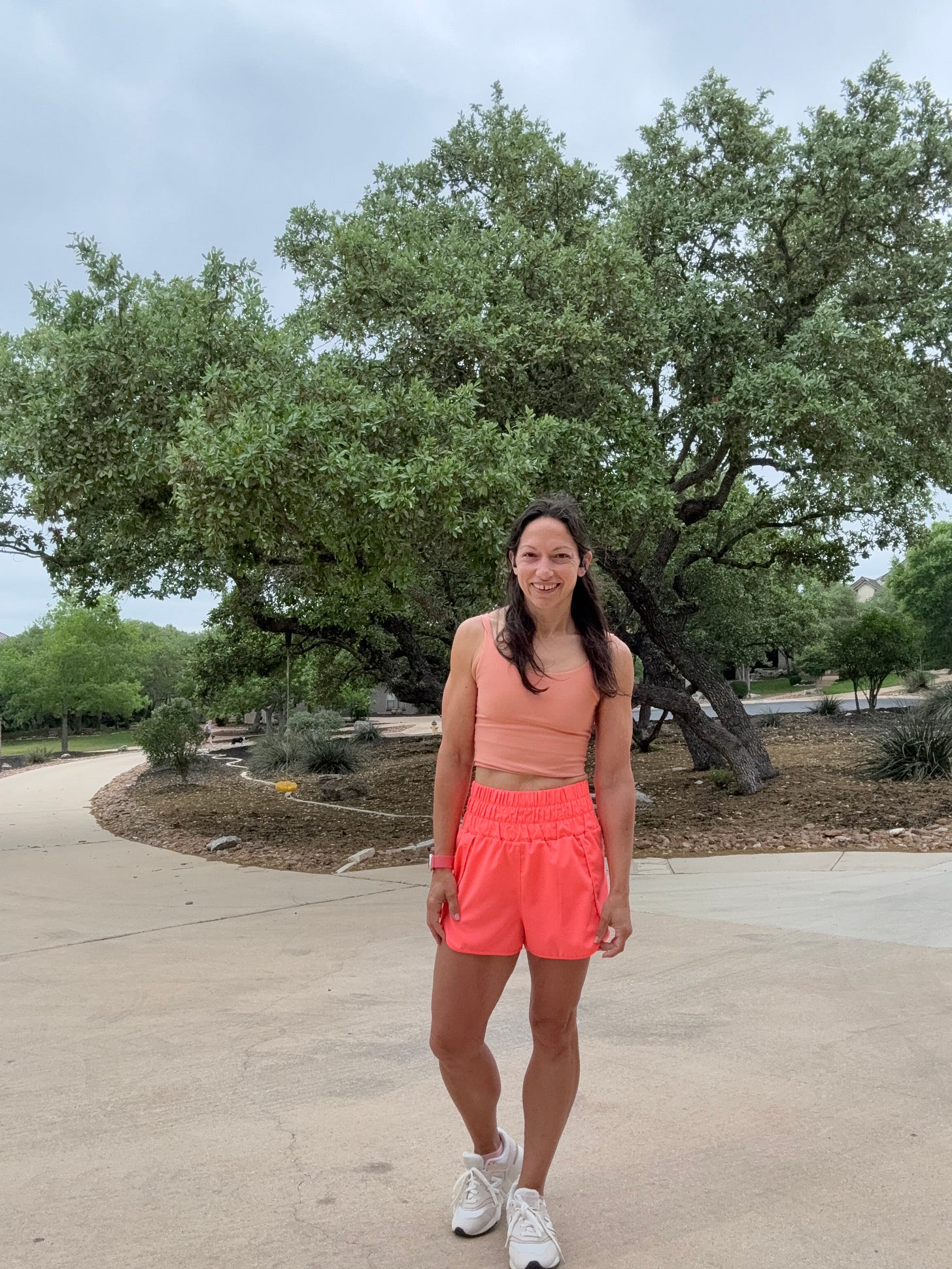 A year later, we had moved and I started doing small things to invest in myself. I got my first Stitch Fix box and couldn’t believe what a difference wearing clothes that fit made! I loved these shorts so much!!!