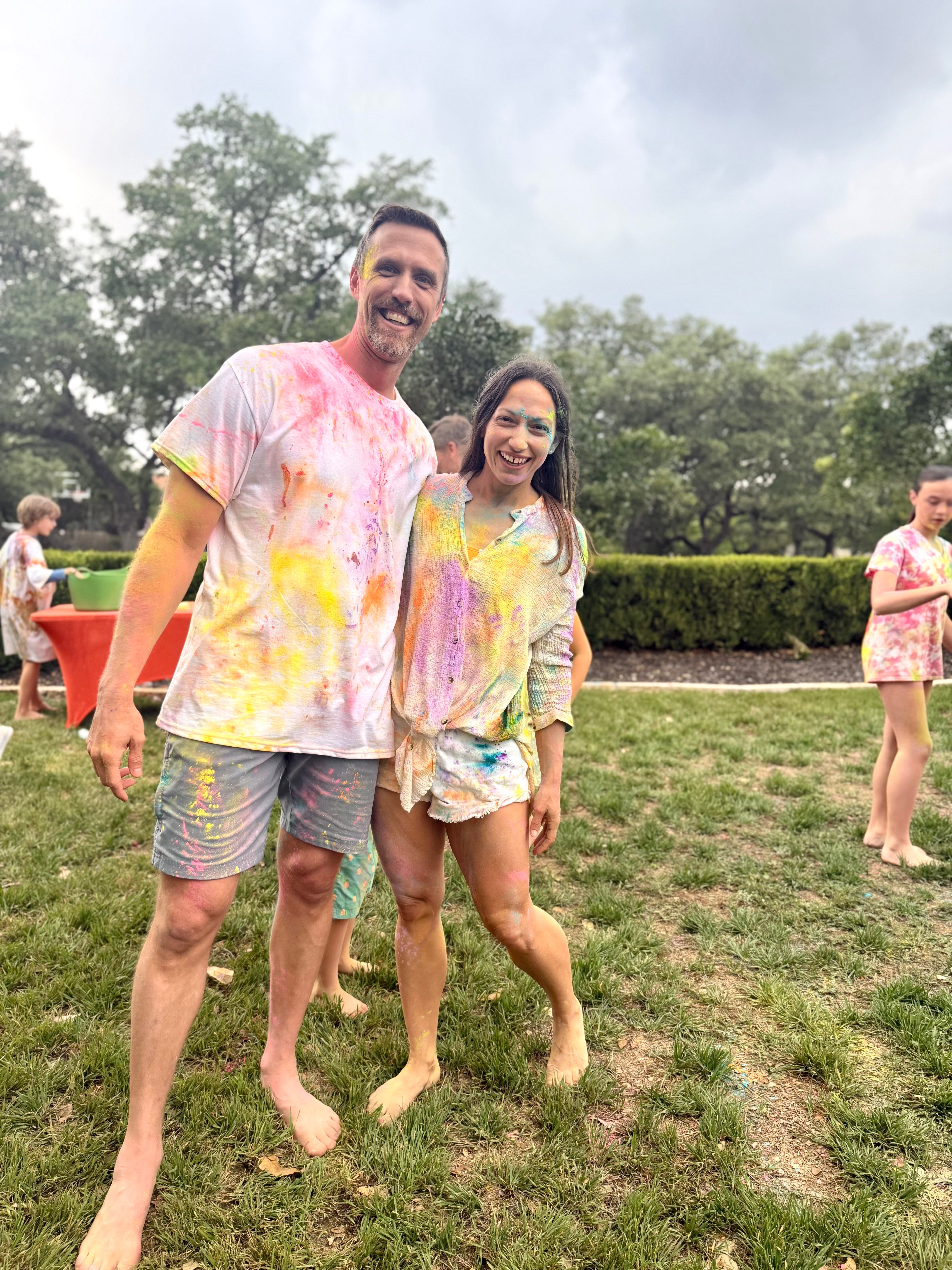 I’m taking this walk the day after our celebration of Holi, an Indian festival of colors and spring. My husband and I spent time in India before kids while he worked there, and it was so special to share a part of our history with our kids and friends and neighbors.